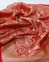 Red Handwoven Pure Kataan Silk Shikaargah Brocade Jaal Benarasi Saree.