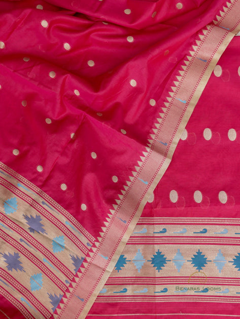 Candy Apple Red Paithani Unstitched Suit Set
