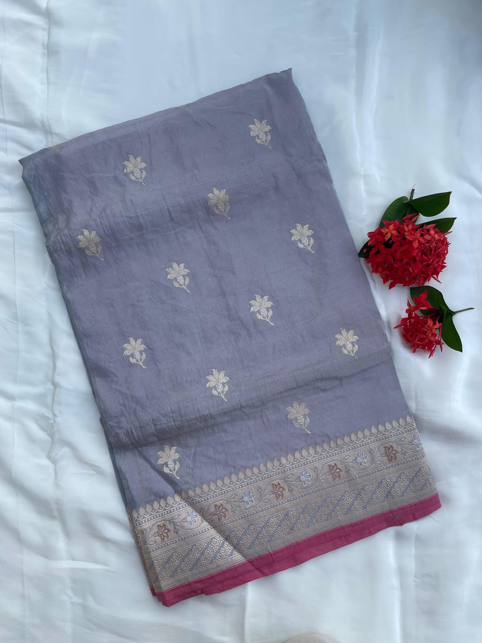 Grey Kadhua Handloom Banarasi Pure Tissue SIlk Kadhua Saree