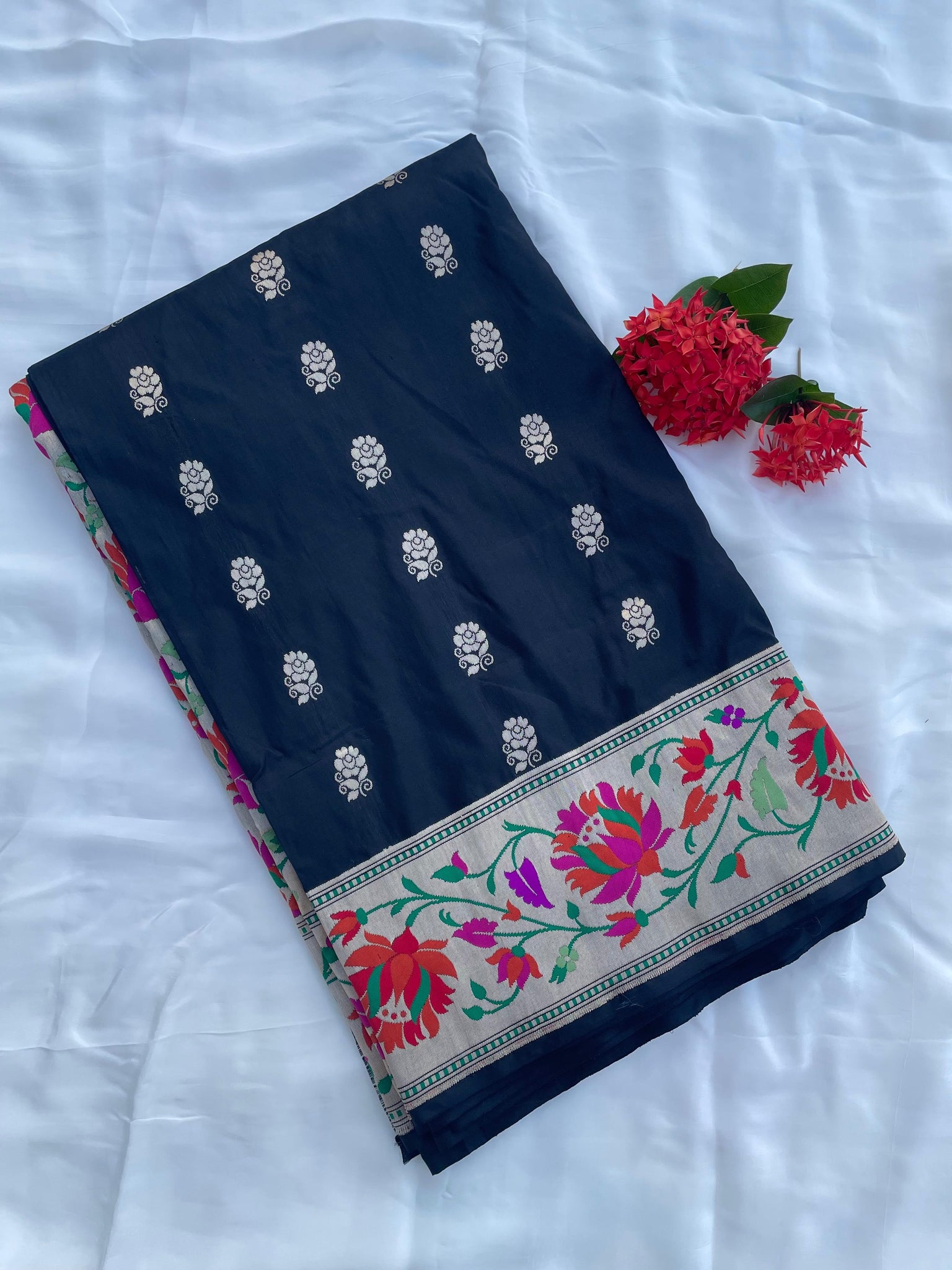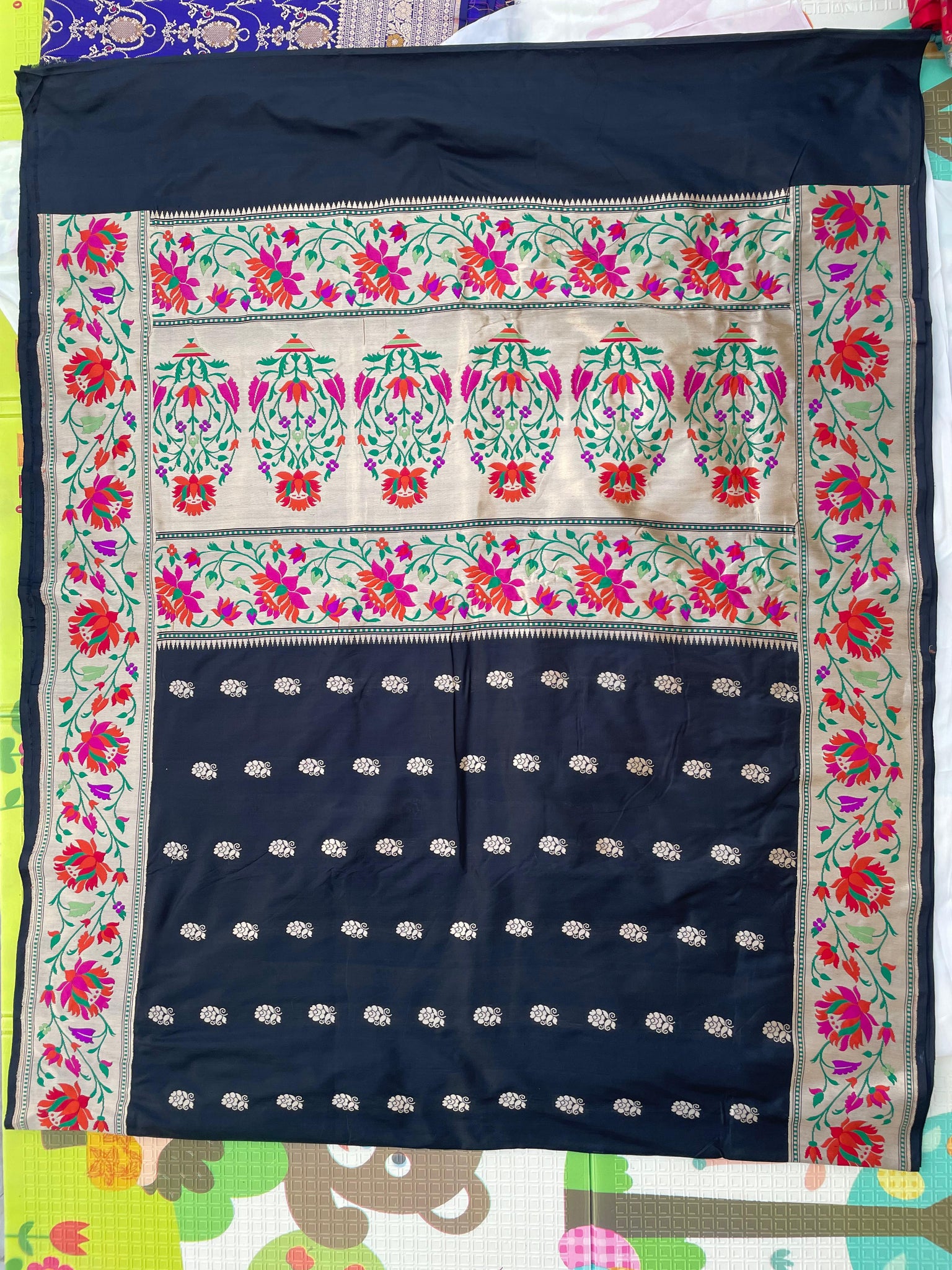 Black Handloom Kataan Silk Banarasi Paithani Silk Saree