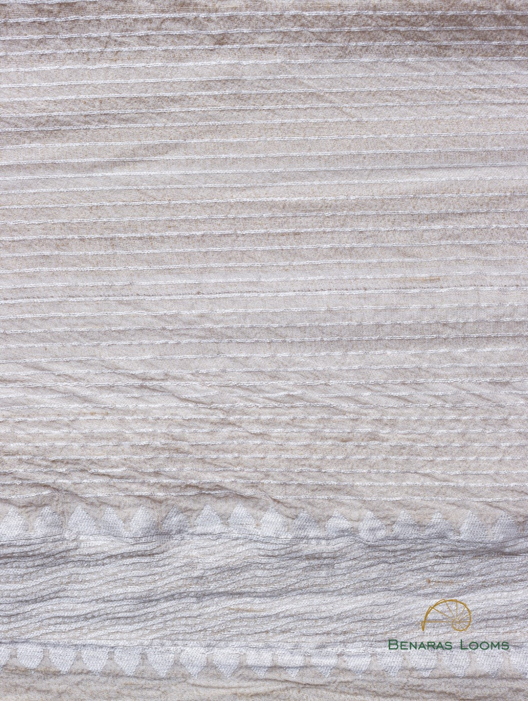 Cream Handloom Tussar Georgette Jaal Banarasi Saree