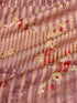 A delicate handwoven fabric blending silk and cotton, featuring a soft dusty pink hue. Its subtle sheen, smooth texture, and lightweight feel make it perfect for elegant sarees, dresses, or bespoke ethnic wear. This fabric combines comfort with timeless charm, highlighting artisanal craftsmanship in every thread.