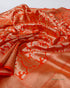Orange Handwoven Pure Kataan Silk Brocade Shikargah Jaal Benarasi Saree