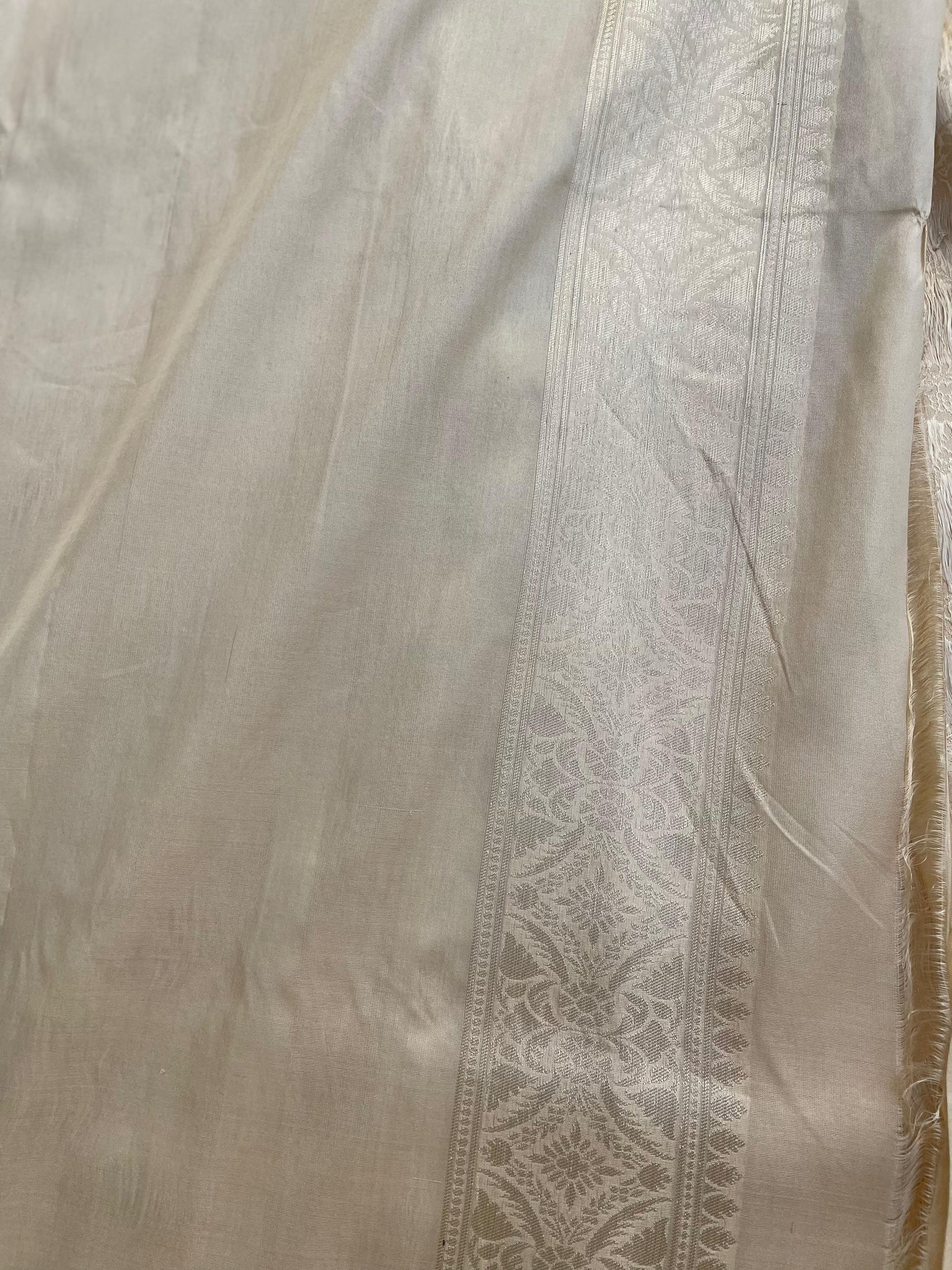 Elegance woven in every thread Embrace timeless grace with this Beige Handloom Banarasi Pure Silk Kadhua Saree – where tradition meets sophistication.