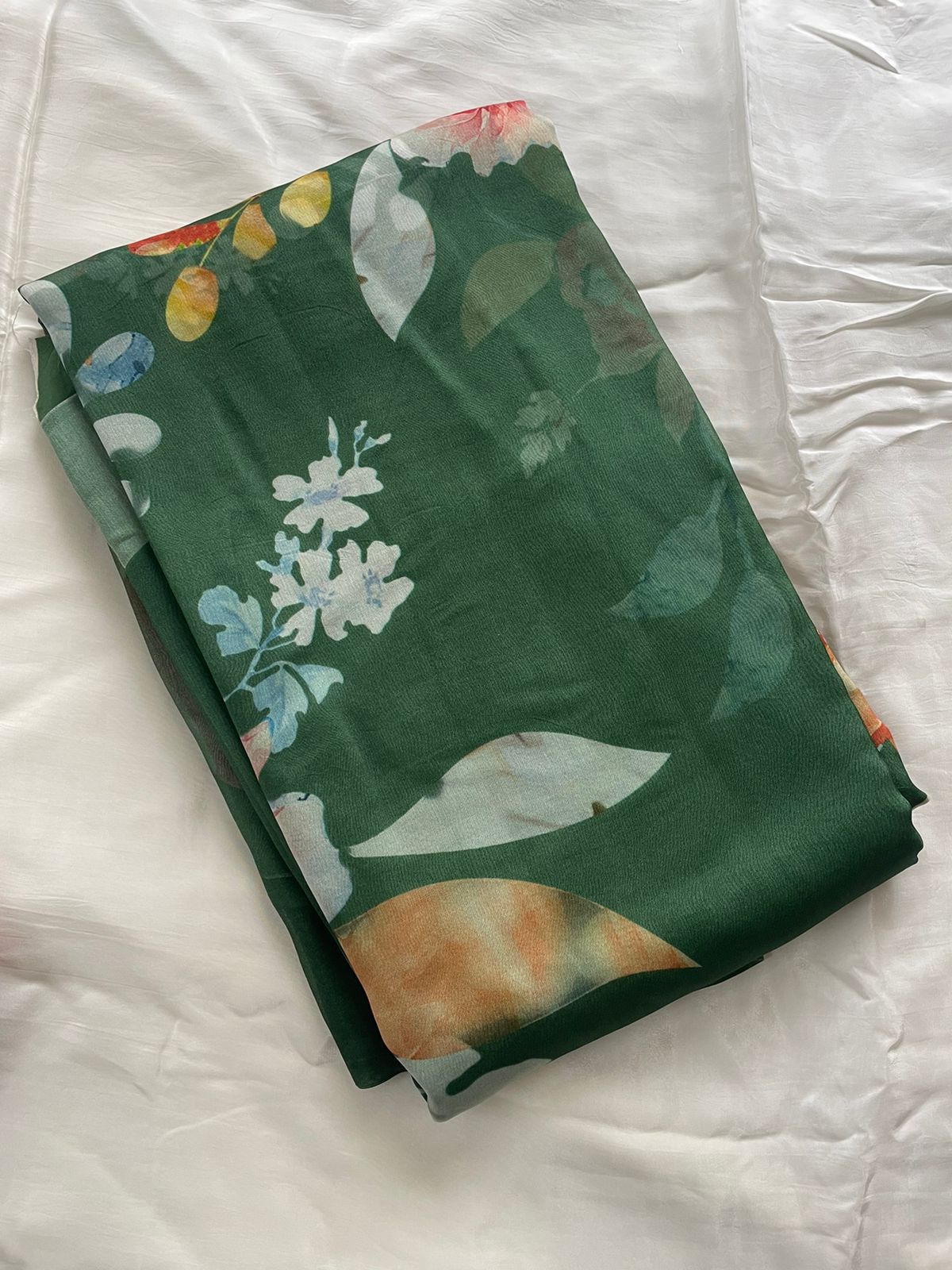 Green Satin Organza Printed Half Half Saree